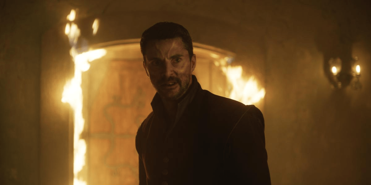 Working with Artisan, we designed and applied the Blood Rage effect on the lead character Matthew in over 40 shots throughout key scenes of A Discovery of Witches in Season 2, in which it flares up and down in intensity in relation to his mood and his battle with control of his vampiric urges. Additionally, we augmented flames in one of these scenes so that they too raged and lulled similarly to reflect these inner struggles in this confrontational moment between the leads. We were brought back for Season 3 for more blood rage work as Matthew’s son Jack battles with his control.